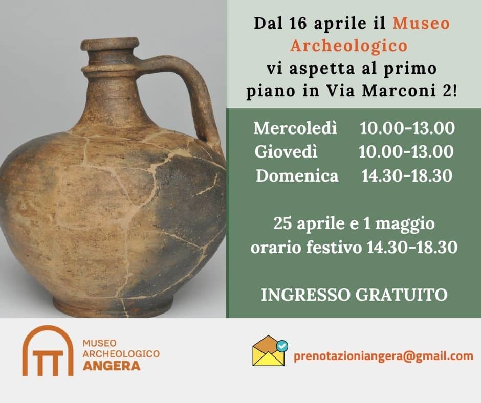 Il Civico Museo Archeologico riapre al pubblico il 16/4. Ingresso libero, adatto a tutti. Possibilità di accesso alle sale inclusa la nuova collezione dedicata alla Preistoria e al MABA Museo Archeologico dei Bambini.
