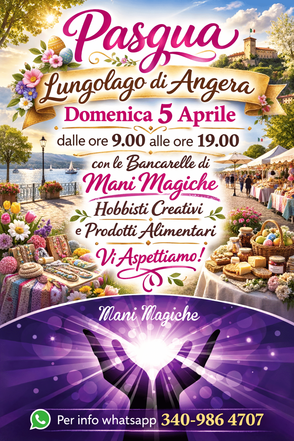 L’Associazione Mani Magiche espone lungolago e invita a visitare gli stand di hobbisti, creativi e prodotti alimentari.