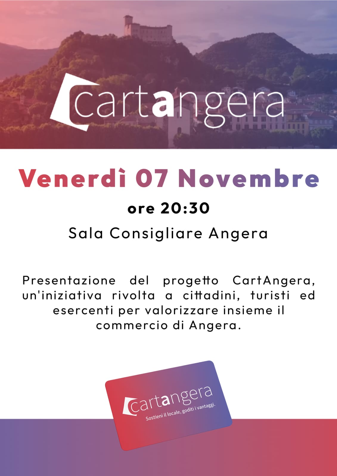 In arrivo la carta fedeltà #Cartangera con sconti e offerte per i clienti e vantaggi per gli esercenti. Tutti i dettagli venerdì 7 novembre ore 20.30 in sala consiliare "Ambrogina Brovelli" via Cavour.