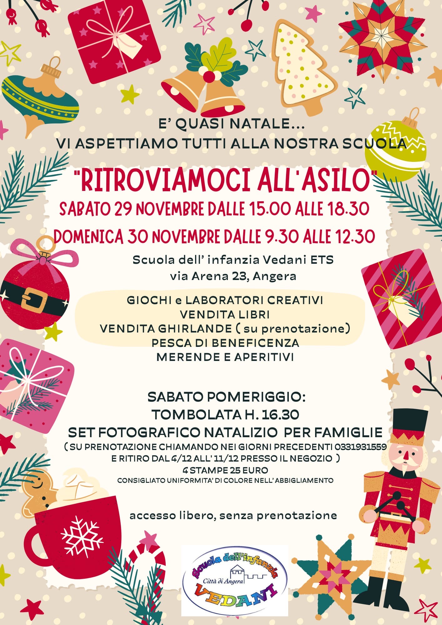 La Scuola dell'infanzia Vedani ETS invita le famiglie a trascorrere un week end fra giochi, laboratori, merende. Su prenotazione anche set fotografico, vendita libri e ghirlande.