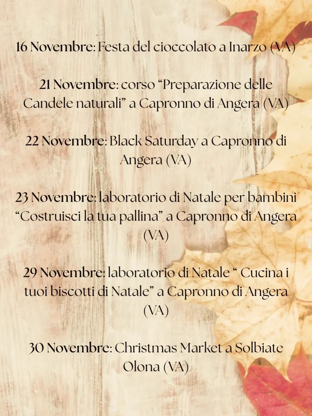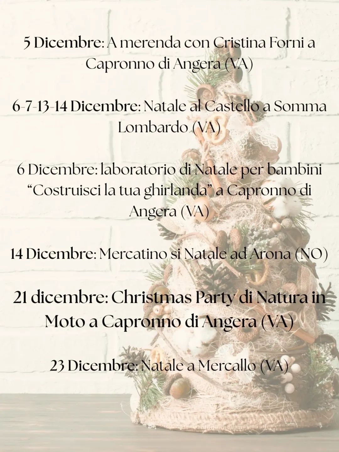 Durante l'Avvento i prossimi week end ci regaleranno momenti speciali anche a Capronno, dove Natura in Moto propone a una serie di laboratori, corsi e Christmas Party organizzati in frazione e dintorni fino al 23/12.