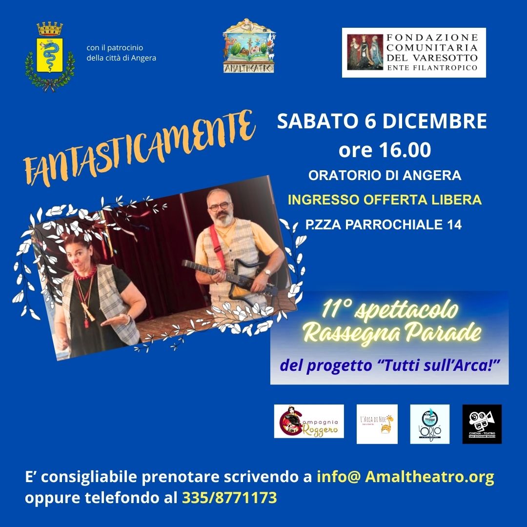 La rassegna Parade fa parte di Tutti sull’Arca!, un progetto che unisce arte, teatro e inclusione sociale, promosso da diverse realtà del territorio e sostenuto dalla Fondazione Comunitaria del Varesotto.