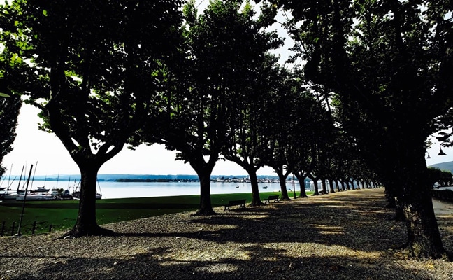 La parte della Allea che dal Porto Austriaco giunge all’imbarcadero è arricchita da tigli ormai quasi secolari cui i pescatori di Angera erano soliti appendere le reti per farle asciugare al sole e per ripararle.
