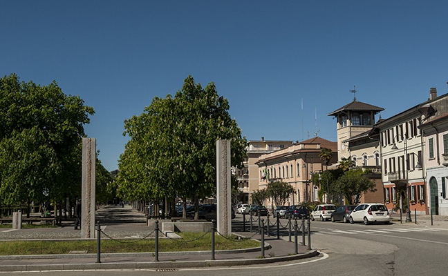L’ampia area compresa tra la moderna fontana e il Santuario della Madonna della Riva ha avuto nei secoli diversi nomi. Nel 1770 è nota come Piazza del Lago; fu poi dedicata a Ferdinando I, con l’unità d’Italia è attesta come Piazza della Riva, Piazza del Lago o Piazza Stazzona; dal 1883 è intitolata a Giuseppe Garibaldi. Scavi condotti nel 2005 sotto i marciapiedi hanno permesso di individuare anche qui la presenza di strutture di età romana.